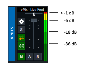 Each audio meter will display green levels when the audio is turned on and blue levels when muted.