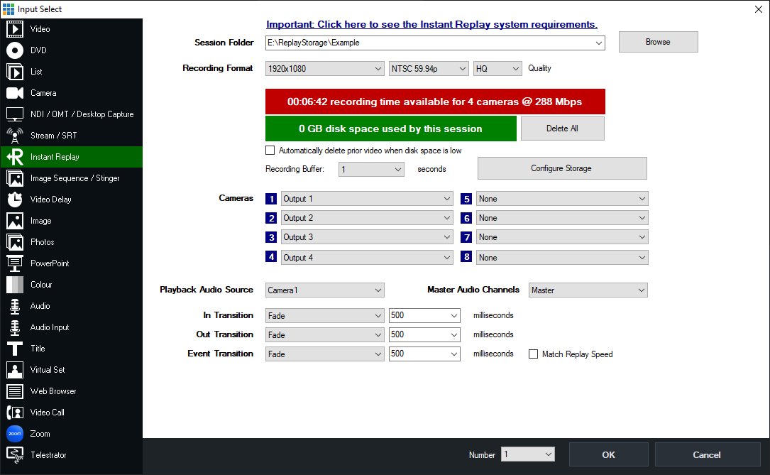 Recordings will be kept in a folder called vmixreplay on the selected drive.