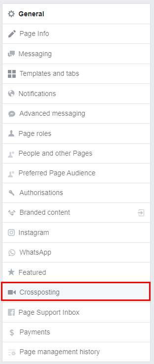 From the left sidebar, select Crossposting.
