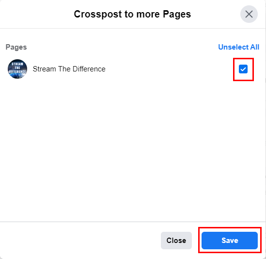 Choose which pages you wish to crosspost to by ticking the checkbox and then select Save.
