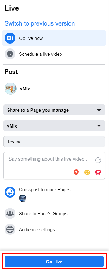 Once Facebook starts receiving a successful preview of the stream, click the Go Live button.