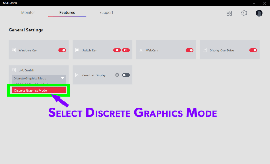 4) Then from the GPU Switch section, select Discrete Graphics Mode. That's it!